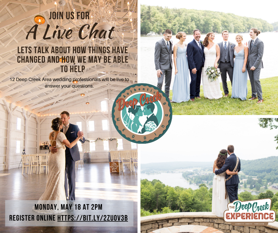 The 2020 Deep Creek and Garrett County wedding season is coming up and I’m sure you have questions. Join me and 11 other DCL area wedding professionals for a virtual wedding Q&A panel on Monday May, 18th at 2:00pm. Registration is required to attend and space is limited so grab your spot today.