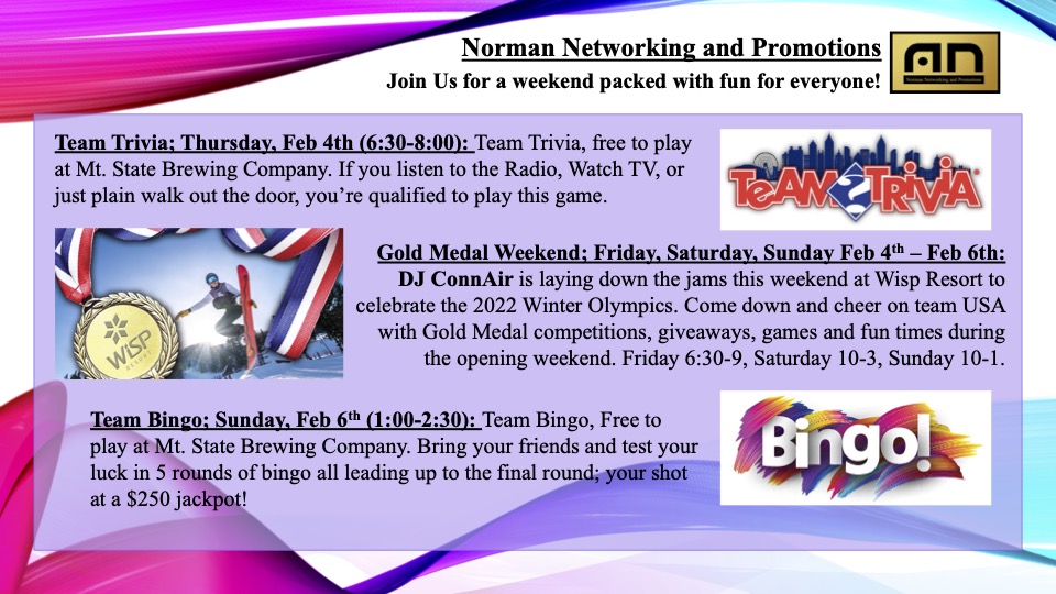 Its real people! Check it out! We set my boy Evan here up with $250 after he successfully got a coverall jackpot bingo during the final round of Team Bingo last Sunday! You too can be a winner, all you have to do is bring the fam and friends to Mt.State Brewing (6690 Sang Run Road, McHenry, MD 21541) Sundays at 1:00! Norman Networking and Promotions is a proud partner of Team Trivia, WV who works with me to put on these shows. Want to know more? view their website http://www.teamtriviawv.com.